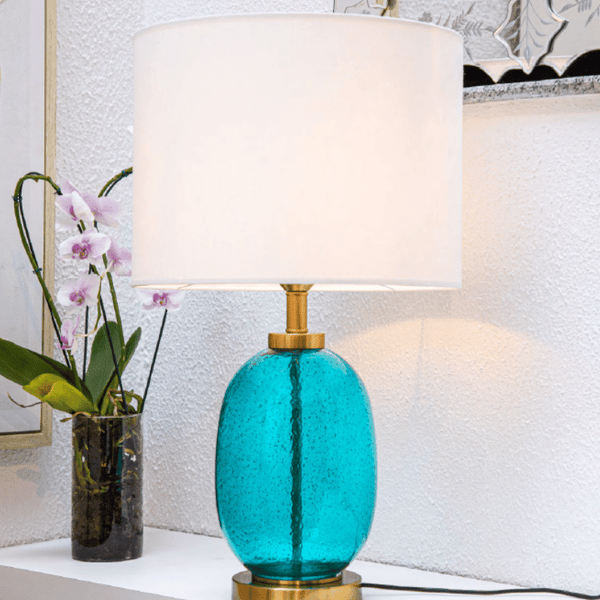 A mistura entre o vidro azul translúcido e o metal bronze cria um contraste harmônico, tornando o abajur não apenas uma fonte de iluminação, mas também um item de decoração que agrega estilo e personalidade. Ideal para salas, quartos ou escritórios, o Abajur Acqua é a escolha certa para quem busca funcionalidade e estética em uma única peça.