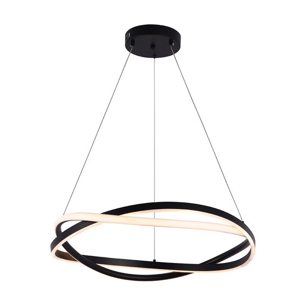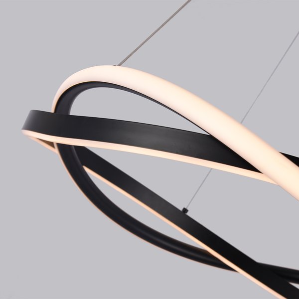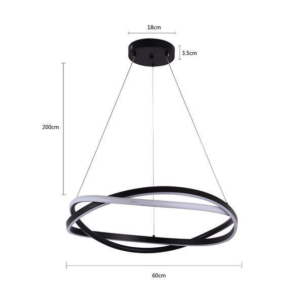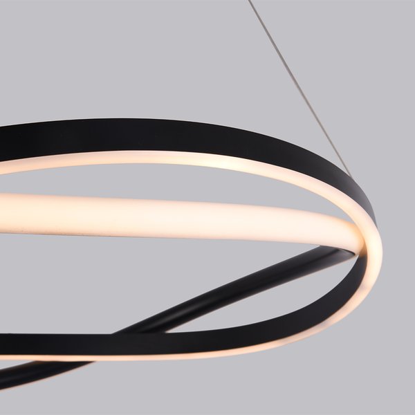 O Pendente LED Euni Odi 2873 da Nordecor é uma peça de iluminação que alia design contemporâneo e eficiência energética. Com 60 cm de diâmetro e estrutura em alumínio com acabamento preto fosco, este pendente apresenta dois aros entrelaçados que criam um efeito visual dinâmico e sofisticado. Seu difusor em silicone proporciona uma luz suave e homogênea, ideal para ambientes que buscam elegância e aconchego.