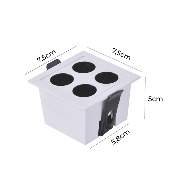 Com dimensões reduzidas de 7,5x7,5x5 cm, o modelo é ideal para instalação embutida em forros de gesso ou drywall, oferecendo uma aplicação discreta e elegante. Disponível nas cores branco e preto, o acabamento em alumínio proporciona durabilidade e permite fácil integração a diferentes estilos de decoração, do clássico ao contemporâneo.